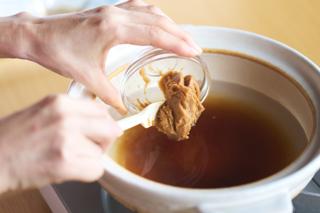 調味料を混ぜ合わせたら、お鍋を火にかけましょう。お味噌の香りが飛ばないよう、完全に沸とうはさせず、ふつふつとするくらいまでをキープしてください。そうしたら、旨味が出る食材から順番に入れていきます。塩分の入っていないだしを使った場合は、味を見ながら塩で調整してみてください。