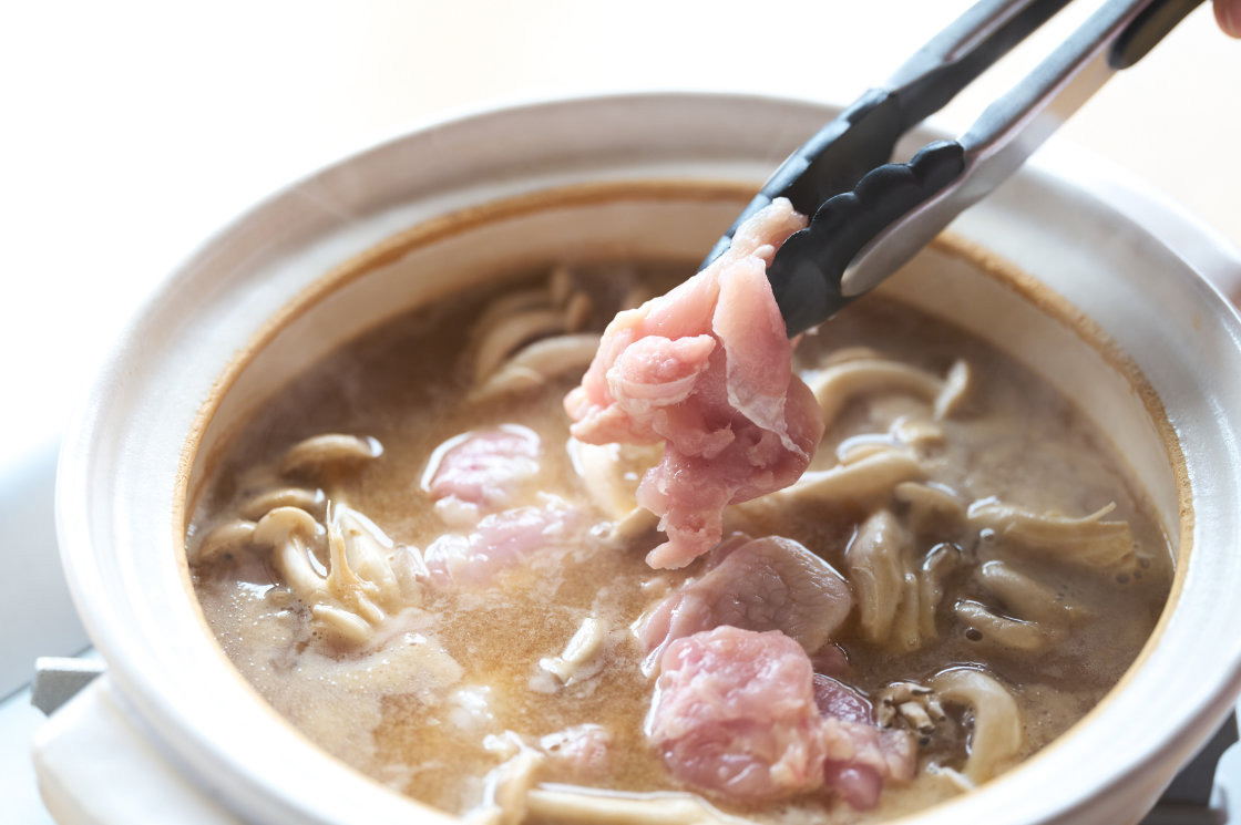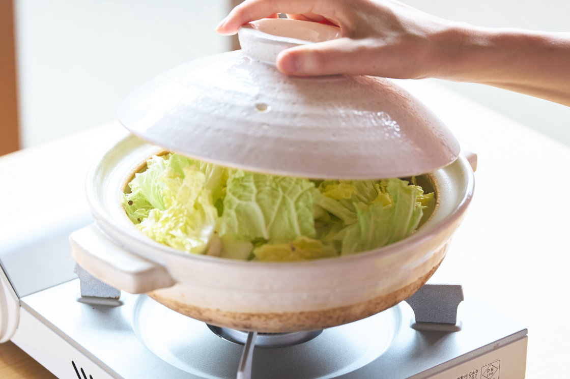 今回は、保温性の高い土鍋を使いました。片手鍋を使うと、保温性は土鍋に劣りますが、熱の入りが早いので、もう少し早く出来上がるかもしれません。お鍋の具合を確認しながら煮込んでくださいね。