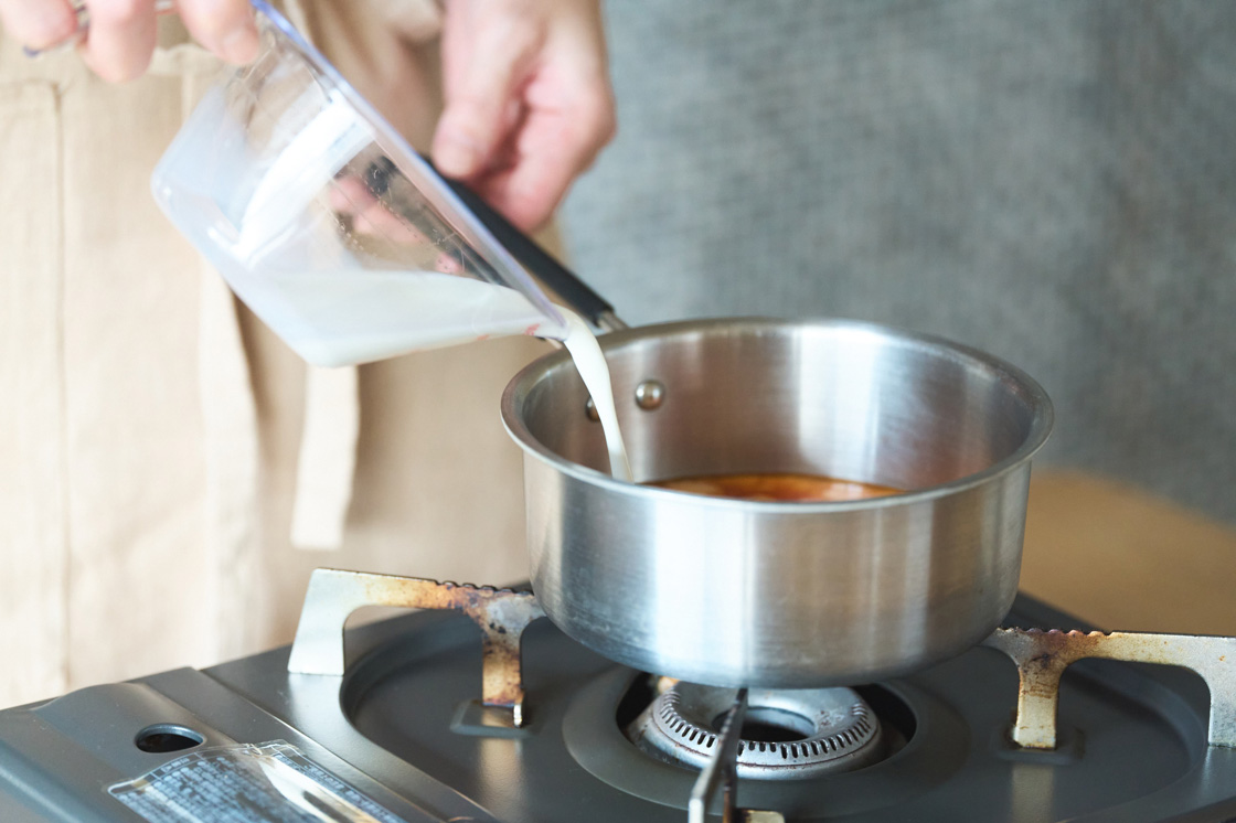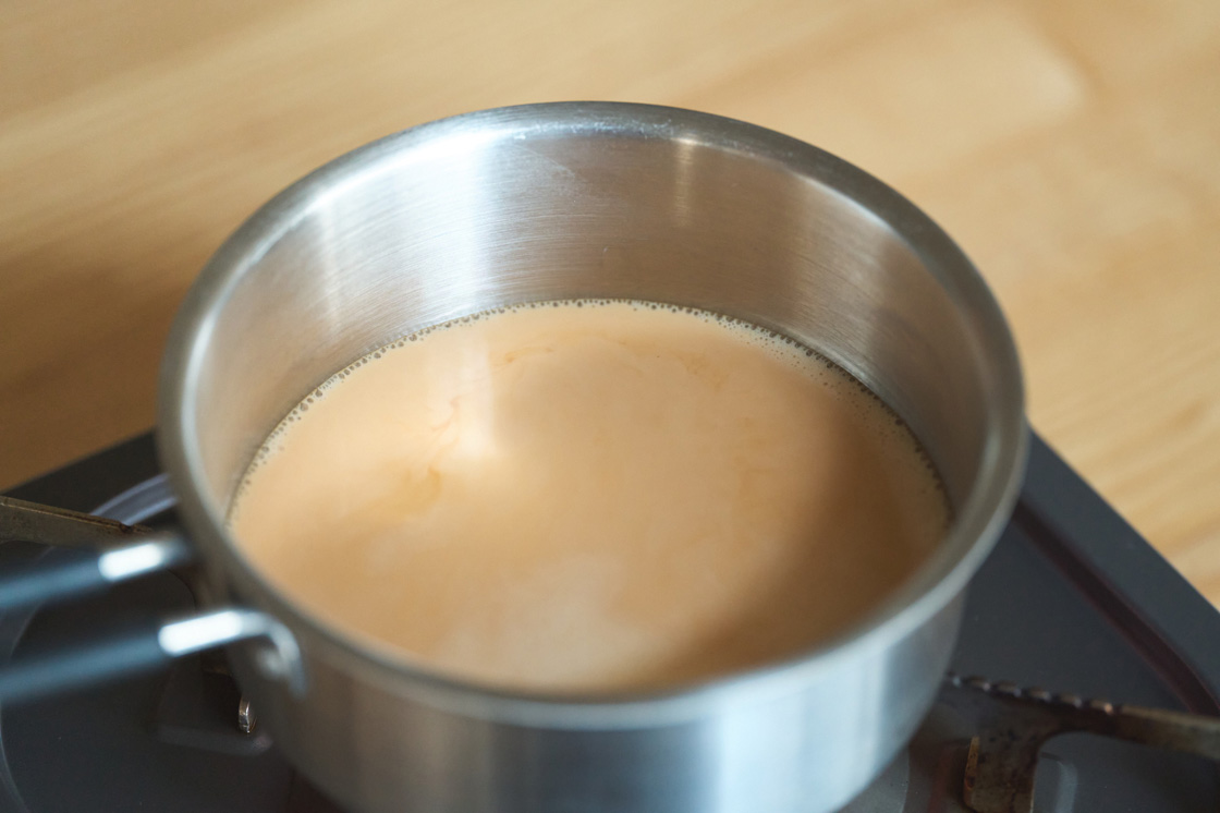 ミルクは沸とうさせてしまうと、風味が飛んだり分離しやすくなったりします。中火でふつふつと、沸とうする直前まで温めるのがおいしく作るコツです。
