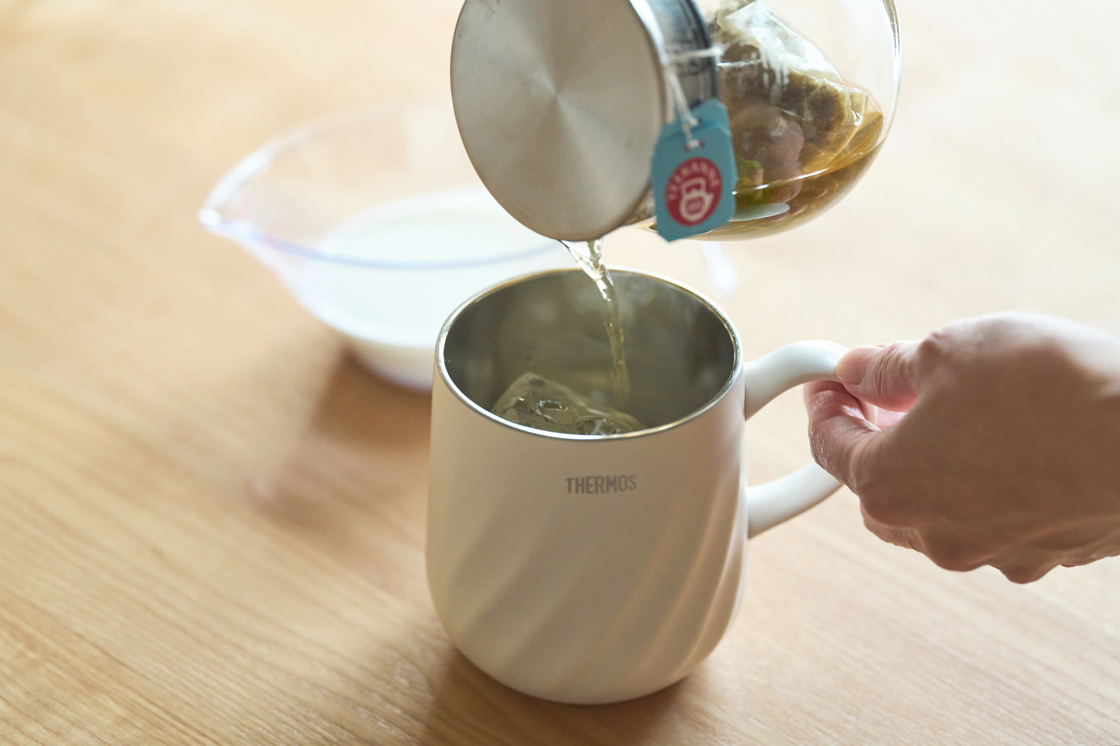 アイスの場合は、ミルクを温める必要がないので、ティーポットでも作ることができます。ホットよりも少し水を減らして、濃いめに抽出するのがポイント。特にカモミールは比較的味が出にくいので、長めに蒸らしましょう。