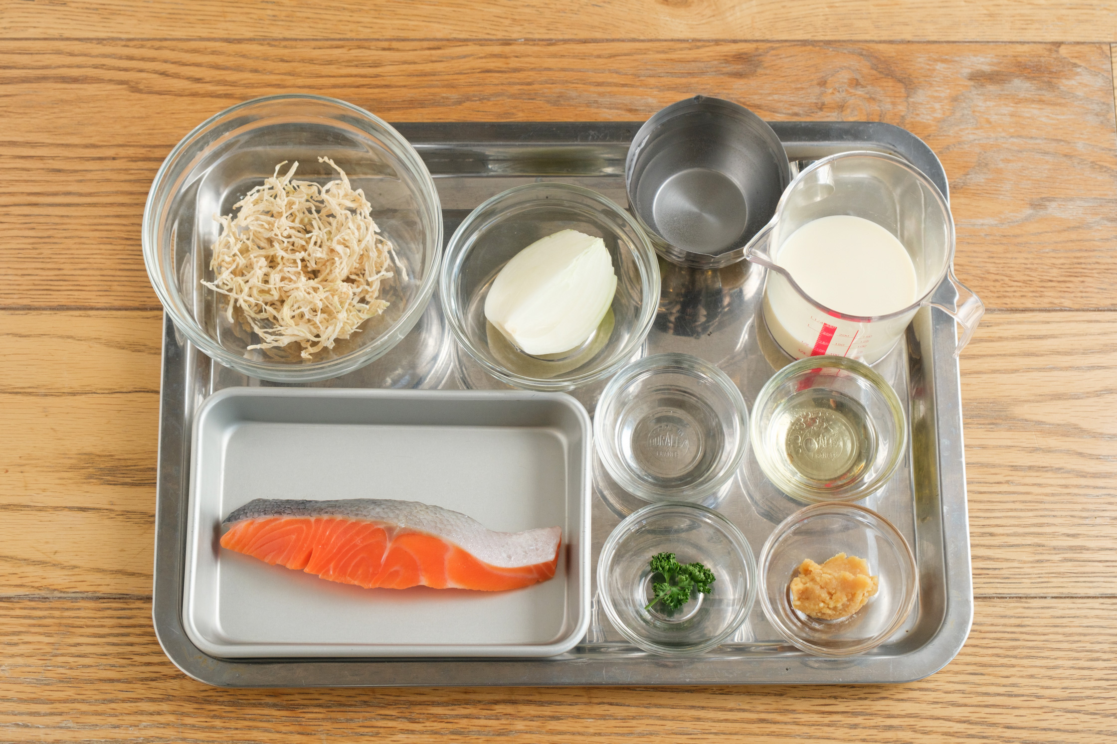 切り干し大根の戻し汁を使うことで、自然なうま味を加えました。生鮭は骨取り済みのものを選ぶと、食べるときにラクです。油は加熱に強く酸化しにくい米油を使用していますが、ご家庭にある油で構いません。