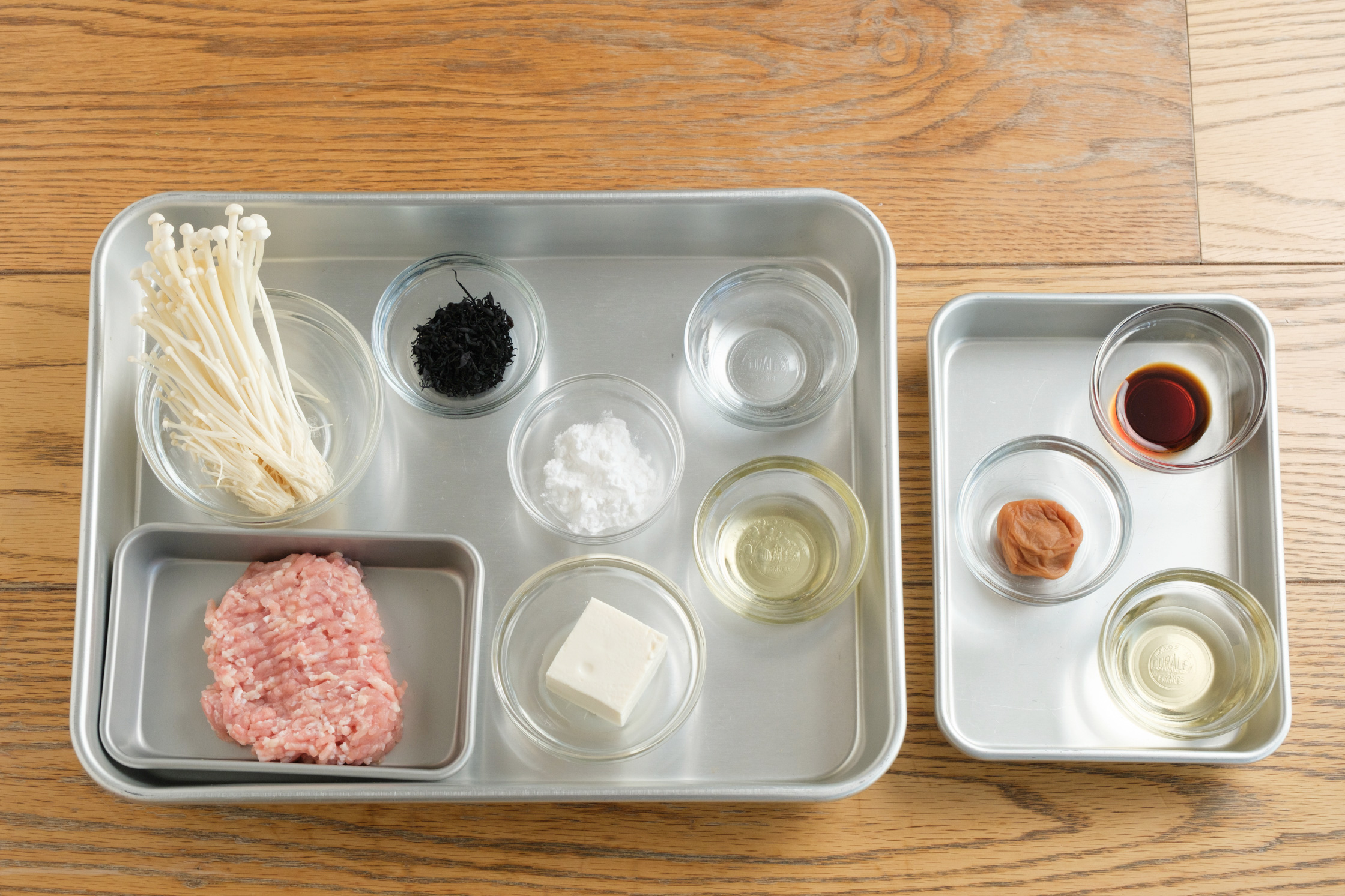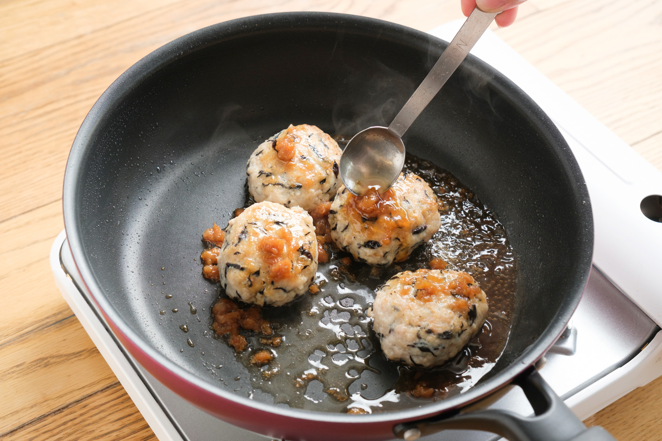 鶏ももひき肉に、ひじきとえのきを加えて食物繊維をプラス。梅の酸味でさっぱり、ふんわり食べやすいつくねです。