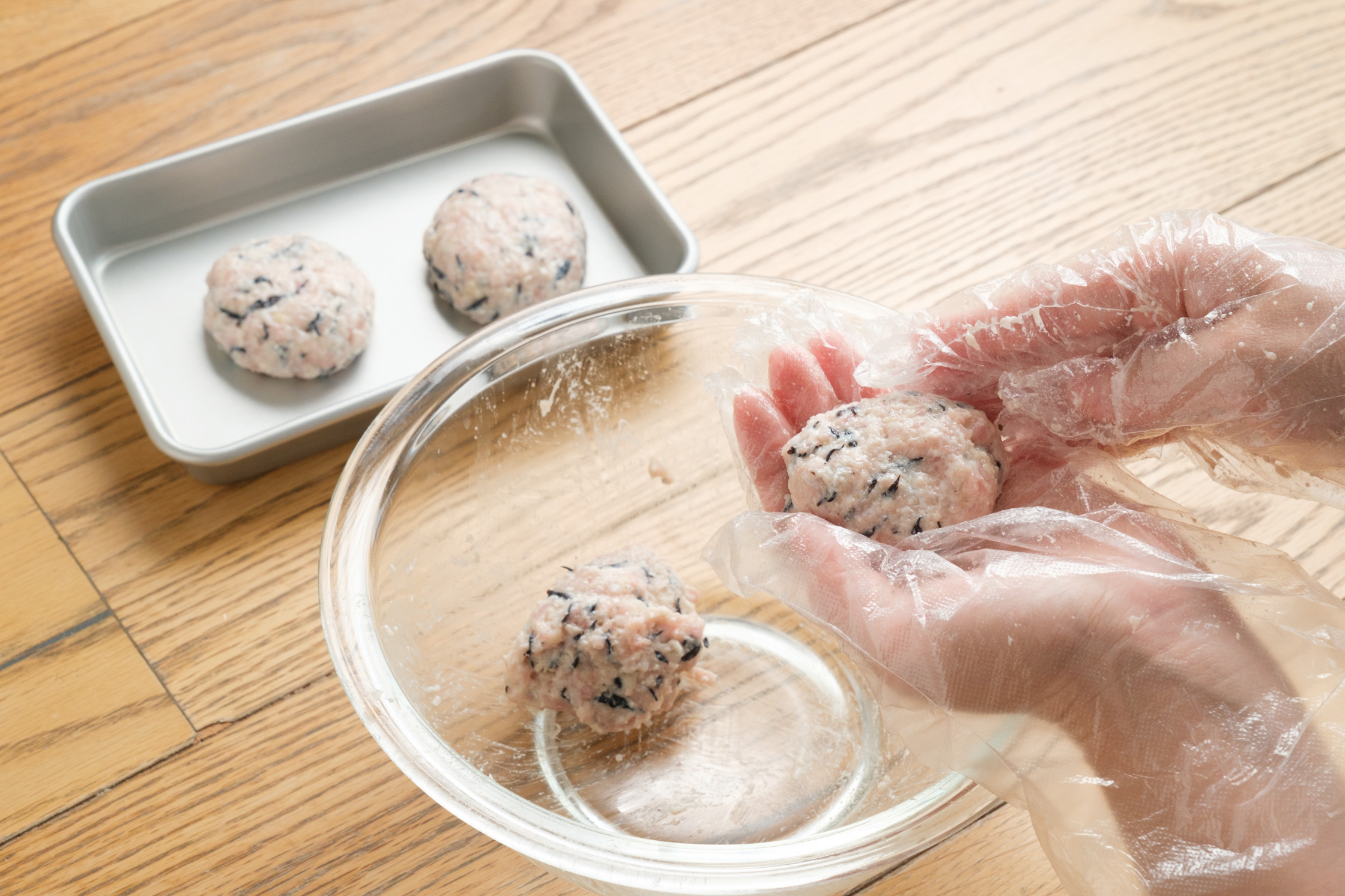 粘り気が出るくらいまでしっかり混ぜましょう!肉だねがやわらかい場合は、片栗粉を小さじ1足してくださいね。